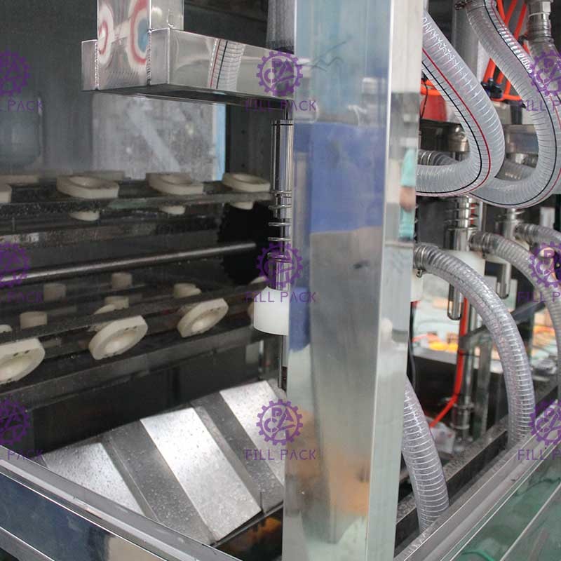 Bagian pencucian memiliki delapan 8 proses: langkah pencucian pertama adalah pencucian air panas, langkah pencucian kedua adalah air tetes, langkah pencucian ketiga adalah air steril,Langkah pencucian keempat adalah meneteskan air , langkah pencucian kelima adalah pencucian larutan desinfeksi; langkah pencucian keenam adalah tetes air, dua langkah terakhir adalah pencucian air murni.