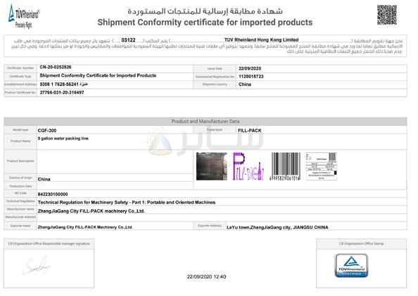 | Standar: | SASO certificate |